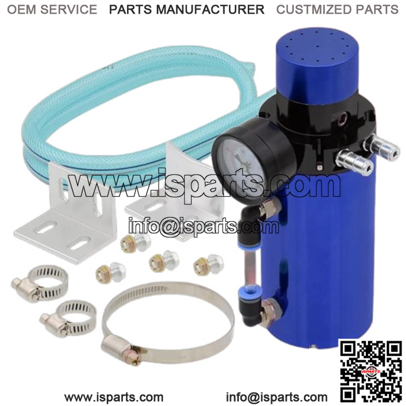 Universal Aluminum Oil Reservoir Catch Can Tank + Internal Breather Foam + Air Flow Gauge