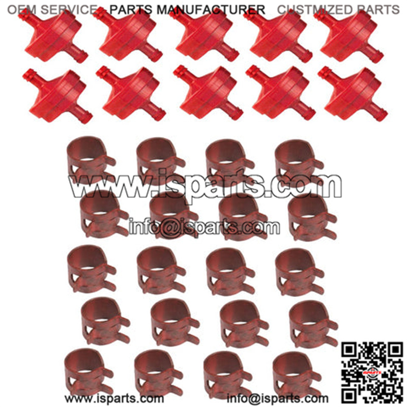 One New Aftermarket Replacement Set of Inline Fuel Filters (10) and Red Hose Clamps (20) Fits Briggs