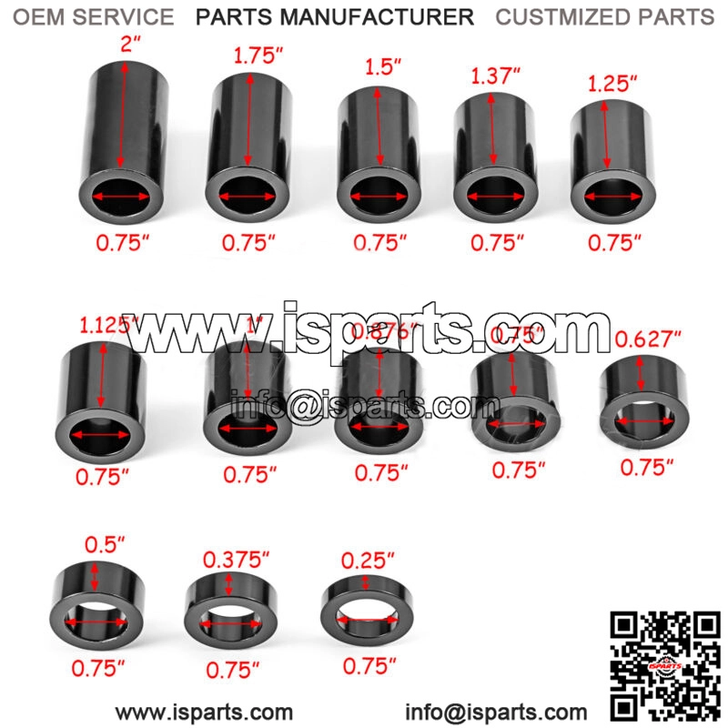 The length of 13 piece spacers including in this kit: 1/4″, 3/8″, 1/2″, 5/8″, 3/4″, 7/8″, 1.0″, 1-1/8″, 1-1/4″, 1-3/8″, 1-1/2″, 1-3/4″, 2.0″.