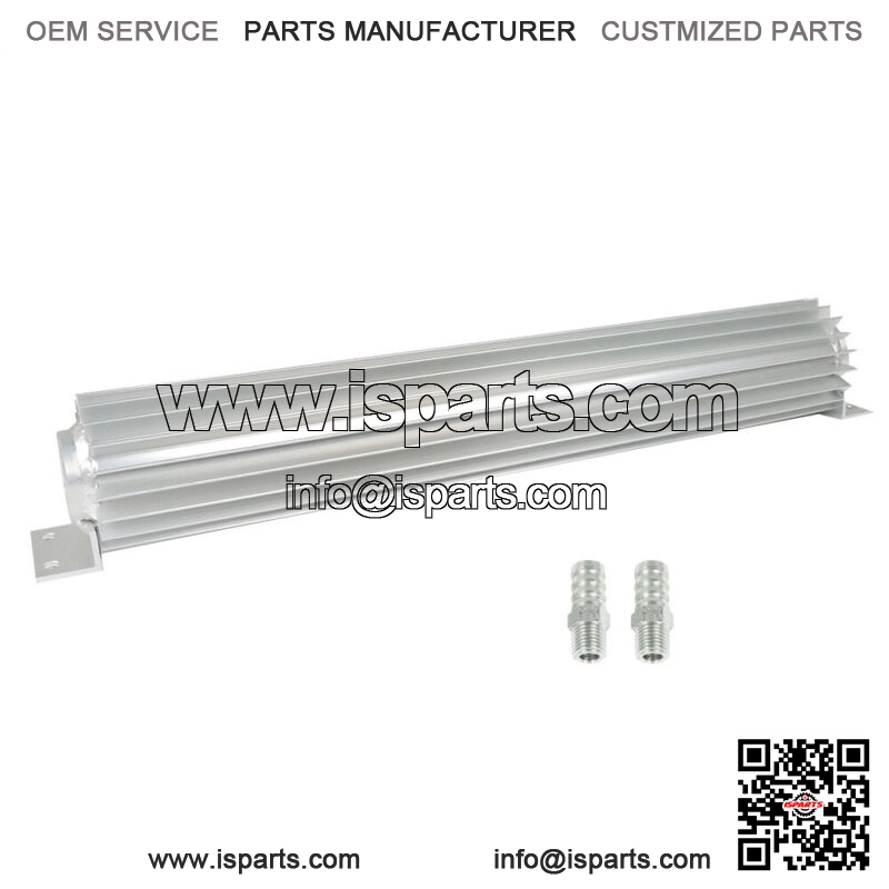 Information?? High quality chassis partseries products. Made with high strength steel tubing for superior strength and durability. Stable performance, reliable quality and long service life Uniform thickness, no blow holes, slag, cracks, tearing, or incomplete fusion. Measured by specialized inspection tools after welding to make sure assemble hole , bushings insert, and installation sizes are proper. Professional InstallerisHighly Recommended(No Instruction Included) Alignment Highly Recommended After Install Made From Satin Aluminum . 100% High Quality. Dual Pass Design, 18″ Length. 2 Holes On One Side Partition Has Two Fittings On The Same Side That Measure At 1/4″ Npt Universal Fit Comes With 1/4″ Npt Barb Fittings Same Side Inlets And Outlets For Easy Line Plumbing And Internal Partitions. Much Better Than Most Of The Others That Are Similar To It It Offers Better Cooling Than Traditional Radiator Coolers Compatibility Chart?? Universal FitmentPackage Content?? 1x 18″ Dual Pass Aluminum Finned Transmission Oil Cooler 2x 1/4″ NPT fittings