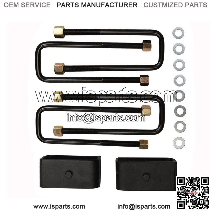 This kit comes with new fabricated rear lift blocks and longer U bolts. Fabricated lift blocks will out last cast iron and will far outlast solid aluminum rear lift blocks. These rear lift blocks are also powdercoated for a long lasting finish.
