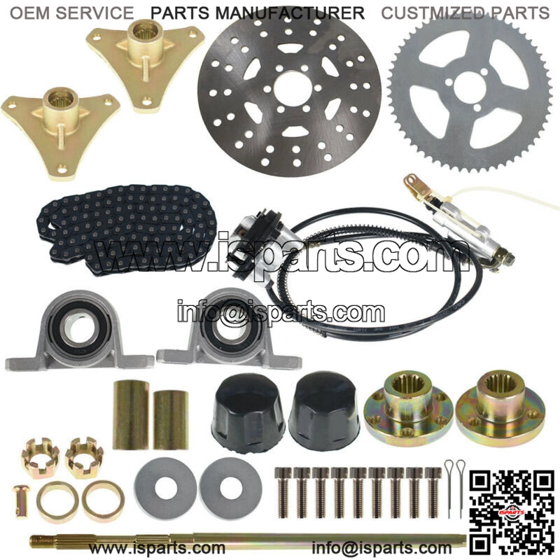 Package Included:Rear Axle + Pair of pillow blocks + Sprocket + Brake Disc + Pair of 4 bolt wheel hubs+Chain+Brake assembly If you buy——44″ Rear Axle Kit Description: