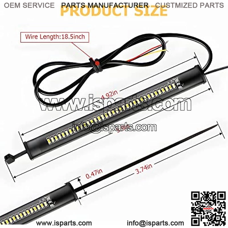 Specification:Voltage: 12 VoltsLight Source Type: LEDColor: White, amberSpecial Feature: WaterproofItem Dimensions: 6.7″ x 2.4″ x 0.4″Item Weight: 1.6 ouncesNumber of LEDs: 36Quantity: 2PCSFeatures:-Each individual strip is powered by 36 super bright LEDs, white for daytime running light, amber for turn signal.-Strong 3M adhesive will stay for a long time even in hot summer.-Waterproof, shock resistant and dustproof, works well in bad weather. -Installation and mounting are easy to understand. -2PCS LED turn signal light in the package, suitable for most kinds of motorcycles.