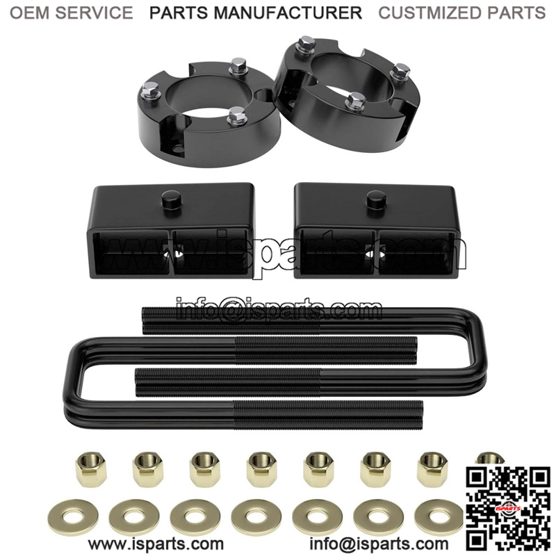 Lifting Height : This kit will raise the front of your car by 3 inch and the rear of your car by 2 inch.Due to the geometry of the suspension, the ratio of lifting height to kit thickness is not 1:1. The actual thickness of the leveling lifting kit itself is less than the lifting height