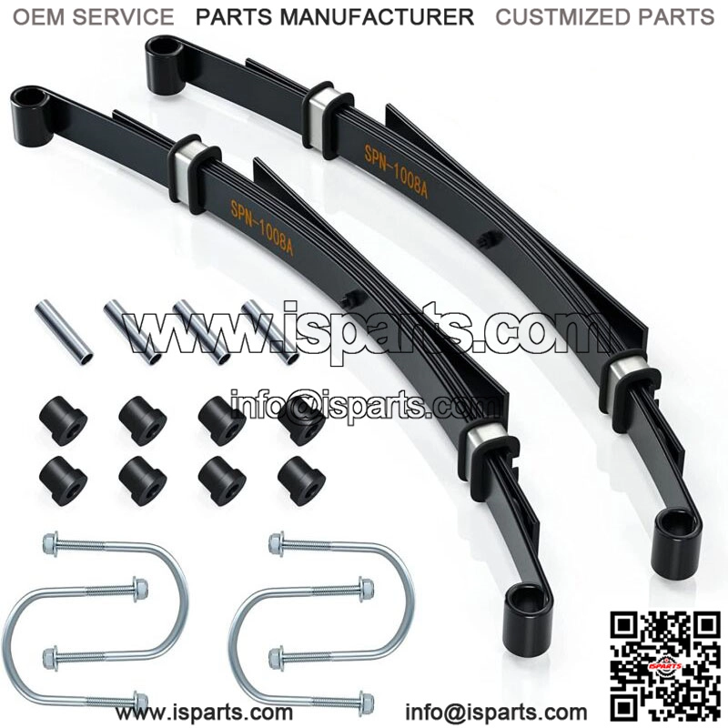 ‘- 4-Leaf heavy duty rear leaf springs kit fit for 1982-up Club Car DS gas & electric golf carts;- Club Car DS rear leaf spring Made of carbon steel, durable and elastic, allows your cart to perform better with the added weight of passengers or cargo;- Sturdy 4-leaf design, ideal for using on vehicles with a rear seat kit, lift kit, heavy off-road use, and when adding any weight to your vehicle.- Coated with anti-rust coating, About 15% thicker than most oem and aftermarket springs on average.- Golf Cart rear leaf spring package includes : 2 x Rear leaf springs(OEM#1014675 102006501, 1011149, 1012618), 4 x metal spacers(OEM#1012303), 8 rubber bushings(OEM#1015583), 2 U-bolts(OEM#1012180).- Provide 100% satisfaction guarantee, 1 year refund or replacement!
