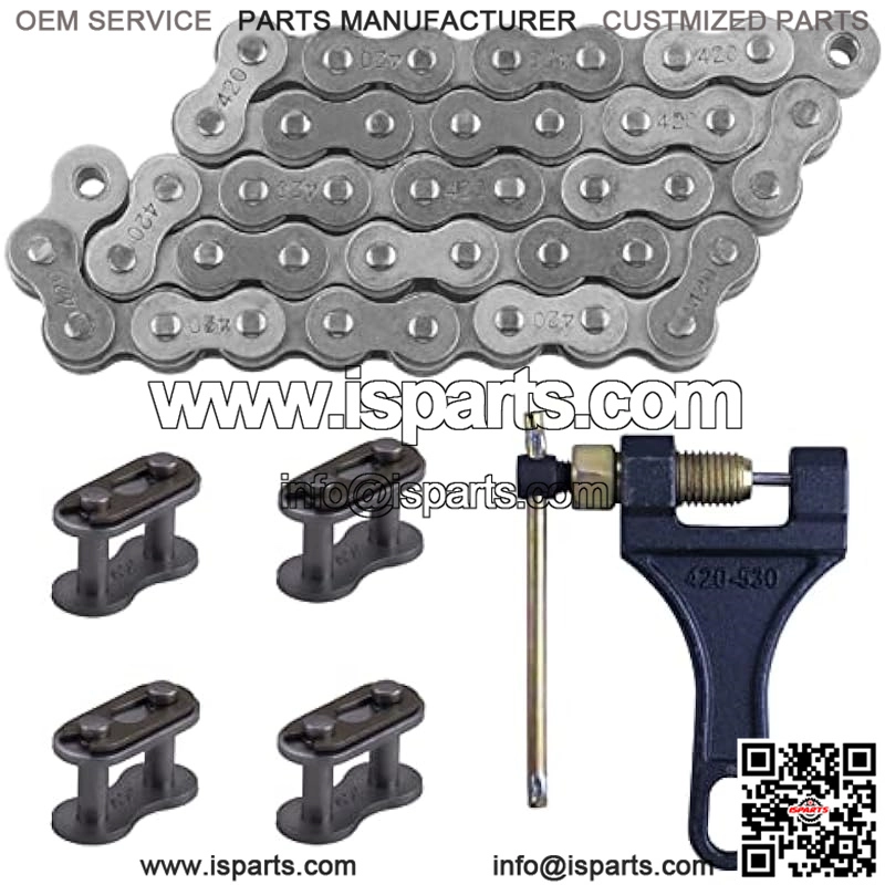 Package including?? 1pcs 420 Motorcycle roller chain , 1pcs chain breaker and 4pcs 420 Chain Connector Link.