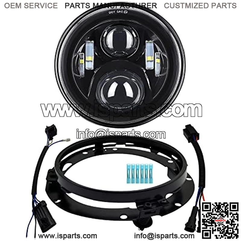 Package Included: 1 x 7″ inch LED Headlight, 1 x Headlight Mounting Ring Bracket, 1 x Headlight Wiring Harness, 1 x H4 to H9 Wire Adapter, 6 x Connectors.