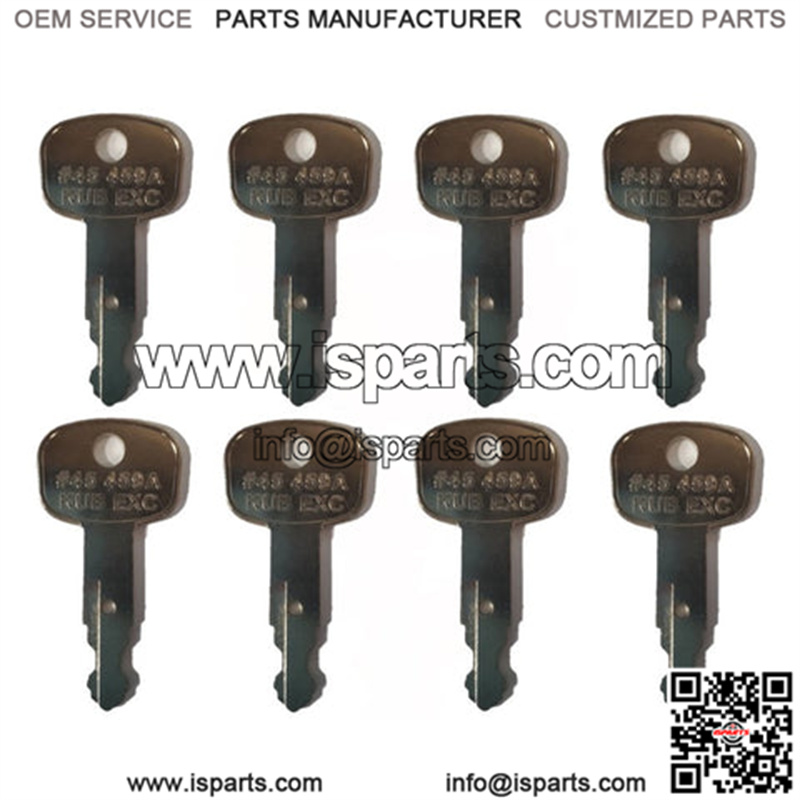 One New Aftermarket Replacement Set of (8) 459A Keys Fits Kubota Mini Digger and Excavator models: KX121-3, KX121-3S, KX121-3STKX161-3, KX161-3STKX41-3KX71-3 CABIN, KX71-3 CANOPY, KX713S CABIN, KX713S CANOPYKX91-3, KX91-3S, KX91-3S2L48U15U25SU35, U35S, U35-S2U45S, U45STKey is stamped 459A.