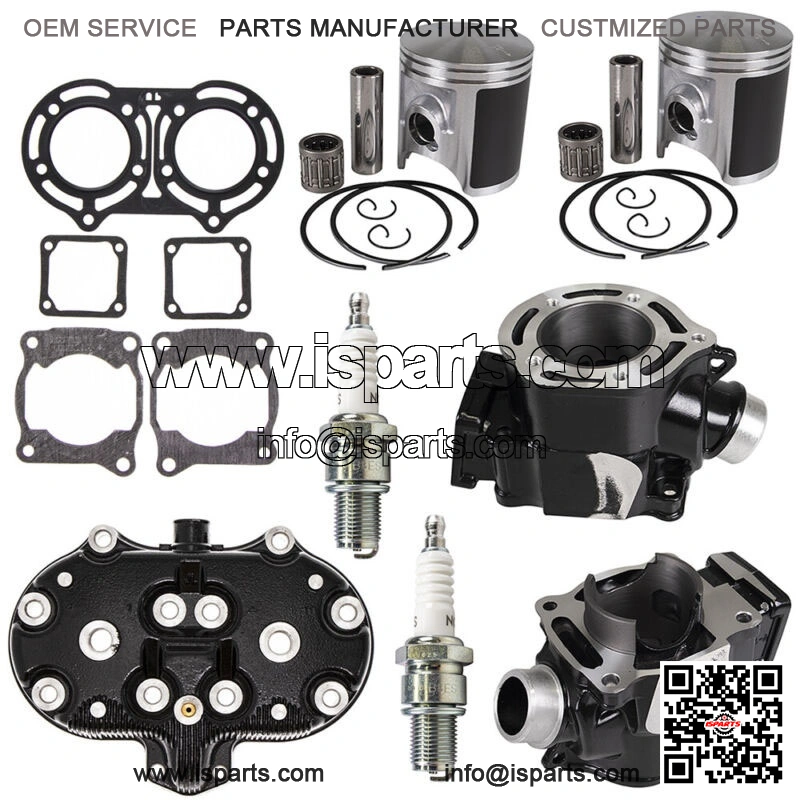 Includes: Left Cylinder, Right Cylinder, Cylinder Head Pistons (2), Piston Rings (2), Wristpins (2) Circlips (4), Needle Bearings (2), Head Gasket, Base Gaskets (2) Valve Seat Gaskets (2), Spark Plugs (2)