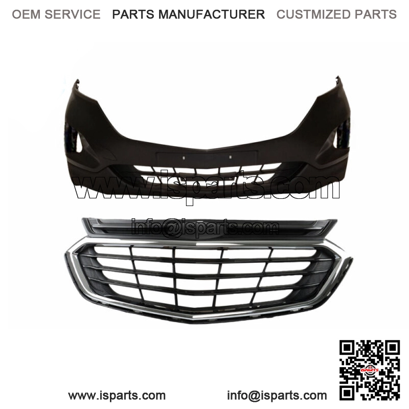 FrontBumperCoverLowerValanceGrille+UpperGrilleFor 2018 2019 2020 Chevy EquinoxIn order to allow you to receive the goods faster, we adopt partial shipments. If you receive one first, please wait patiently and the other will arrive soon.If you have any questions, please feel free to contact Package includes : FrontBumperCoverLowerValanceGrille x 1Front Upper Grille x 1Fitment : For 2018 2019 2020 Chevrolet Equinox**Front Grille Grill**Color : BlackPosition : Front Upper LowerMaterial : ABS Plastic /Polycarbonate Lens.Made from high grade OE comparable materials to withstand rough road wear and the test of time.Installation : Direct bolt-on replacement. No modification required. Product does not come with installation instructions, please refer to a shop/factory manual for installation.**Front Bumper Cover**Reminder:1:Take extra care when ing a blade or knife to open the packaging to avoid accidentally damaging the surface of your bumper cover.2: If you see any minor scuffs, don??t worry??your bumper cover comes pre-primed for protection and should be scuffed completely before applying your chosen primer and paint.Note:Folding our bumper covers to help you enjoy savings on shipping costs. When you recieve the bumper covers, you need unfold your bumper cover.Here??s a step by step guide on how to unpack, unfoldOutdoor Method:1. Find a spot that gets a lot of direct sunlight (it will need to be in the sun for up to 4 hours).2. Open the packaging and remove the bumper cover.3. Arrange the cardboard packaging to lie flat on the ground. This will serve as a clean surface for your bumper cover.4. Let the bumper cover sit in the sunlight for three hours.5. Once you hit the three-hour mark, reposition the bumper cover so that the front part is facing the floor. Leave it in this position for the remaining hour.Indoor Method:1.e the cardboard packaging as your work surface and place the bumper cover on top.2.Look for creased areas on the bumper cover. Apply heat to those areas with the heat gun.3.Avoid pointing the heat gun at one spot for too long, as excessive heat can distort or melt the plastic. Keep the gun moving to spread the heat evenly across the surface of the bumper cover.4.Once the last patch of creased plastic is straightened out, you can consider the bumper cover fully unfolded.