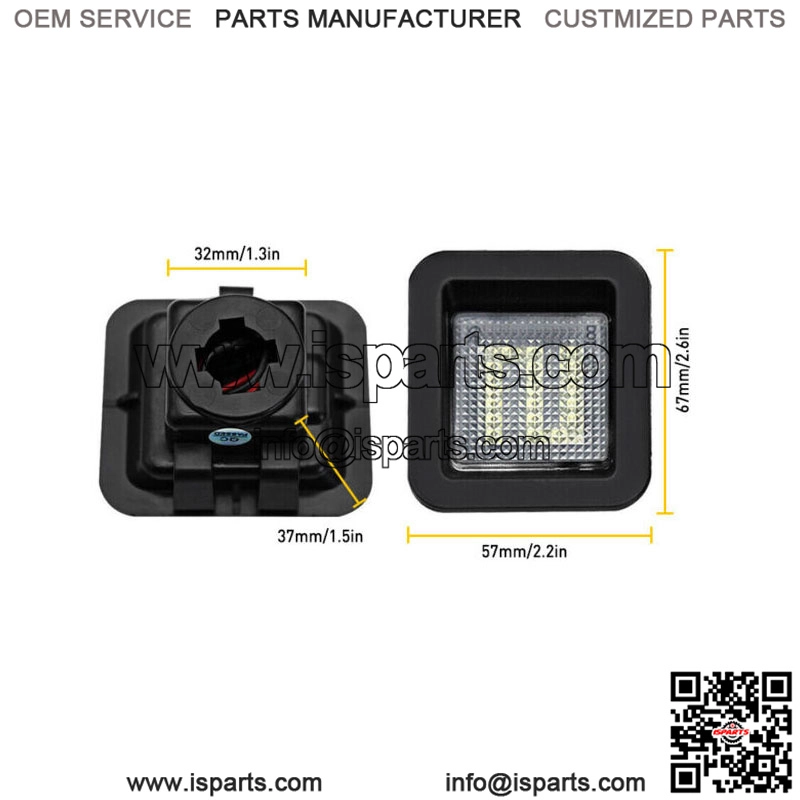 Description:Extremely Bright?? Each lamp has 18 SMD 6000K White LED chips. 9 times brighter than your factory license plate lights.Easy Installation??Non-polarity plugs, simply plug & play, direct fit into original housing without modifications. Simple upgradation but greatly increase the visibility of your license plate.Longer Lifespan??IP67 waterproof rate ensures license plate lights working over 50,000hrs under different circumstance.Beatiful And Safe : will give your car a modern and luxurious appearance with enhanced safety at night. Features:Type: LEDApplication:License Plate LightProduct packaging: Paper packageProduct size: 2.2*2.6 in ( 57*67mm )Number of LEDs: 18 PCSLumens: 560 LM/set (280 LM/per)Color temperature: 6000KLuminous color: WhiteService life: more than 50000hWaterproof rating: IP67Country/Region of Manufacture: ChinaFitment Type:Direct ReplacementProduct Contain: 1X White License Plate LightNumber Of Pieces:1Warranty: 2 Year Package Include: 1X White License Plate Lights