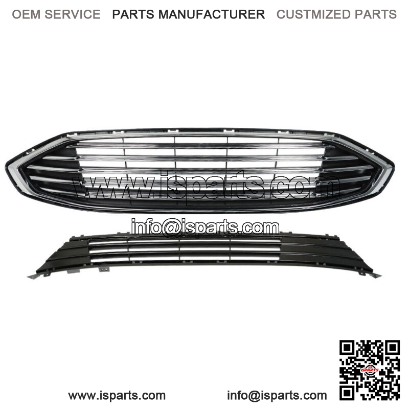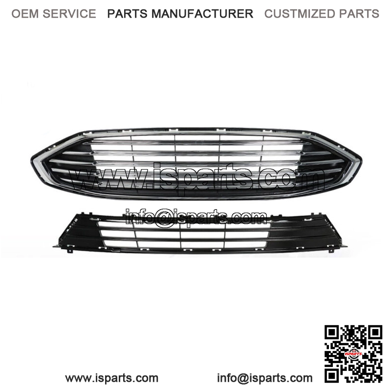 For 2017-2018 Ford Fion Front Bumper Upper & Lower Grille Assembly Chrome