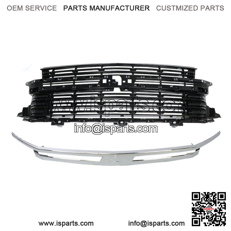 For 2021 2022 Chevrolet Suburban Tahoe LS LT Front Grille Bright Chrome & Black