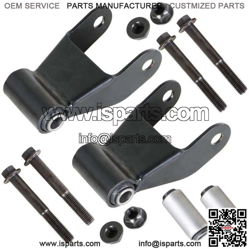 Fitment?? 1989-90 Ford Bronco II Rear Rearward Leaf Spring Shackle1975-09 Ford E150 Van Rear Rearward Leaf Spring Shackle1986-96 Ford F150 Truck Super Cab (Extended Cab) Rear Wheel Drive Rear Rearward Leaf Spring Shackle1986-96 Ford F150 Truck Regular Cab Rear Wheel Drive Rear Rearward Leaf Spring Shackle1986-08 Ford Ranger Rear Rearward Leaf Spring Shackle2001-07 Mazda B2300 Truck Rear Rearward Leaf Spring Shackle1994-97 Mazda B2300 Truck Rear Rearward Leaf Spring Shackle1998-01 Mazda B2500 Truck Rear Rearward Leaf Spring Shackle1994-07 Mazda B3000 Truck Rear Rearward Leaf Spring Shackle1994-07 Mazda B4000 Truck Rear Rearward Leaf Spring Shackle Kit includes: (2) – Shackles with Bushings(2) – Spring Bushings(4) – Mounting Bolts(4) – Locking NutsMeasurements:Leaf Spring Side (Inside Diameter) – 3-1/16″Bracket Side (Outside Diameter) – 2-15/16″Direct replacementsBuilt to strict quality control standards Specifications: Comes as a PAIRFits both LH (Driver Side) & RH (Passenger Side)Will replace only the rear shackles on the rear leaf springsReplaces dealer part numbers: D5UZ-5630-B, E6TZ-5630-C, E6TZ-5776-B, ZZM0-28-144, D5UZ5630B, E6TZ5630C, E6TZ5776B, ZZM028144
