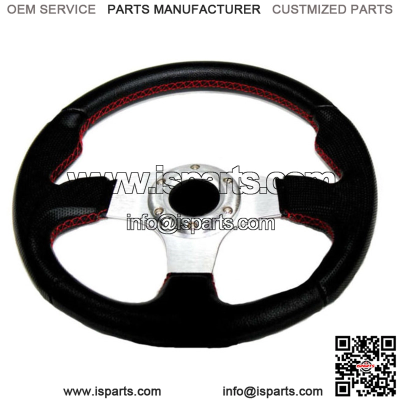 For Polaris RZR 550 800 900 1000 320mm Steering Wheel Silver w/ Red Stitching