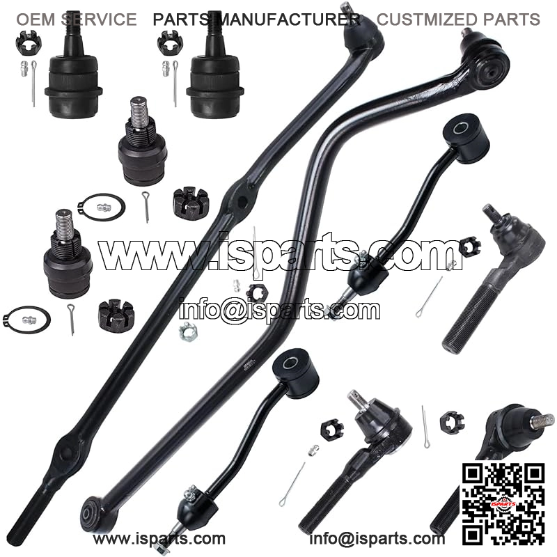 Kit Includes: 1x Front Track Bar + 1x Drag Link + 1x Front Inner Tie End + 2x Front Outer Tie Rod End + 2x Sway Bars + 4x Upper and Lower Ball Joints
