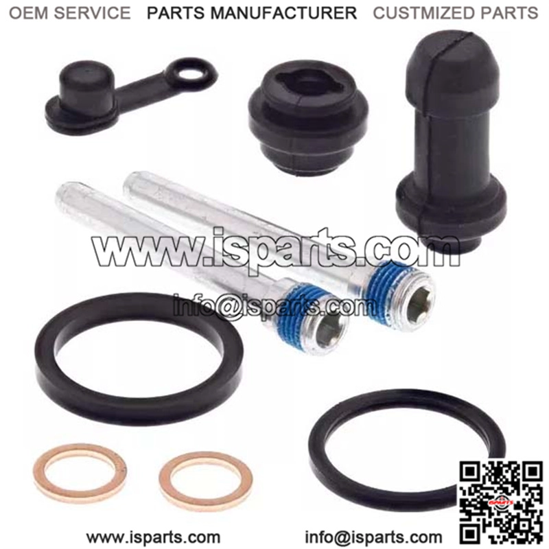 Kit includes: boots, seals, bleeder cap, brake pad retaining pins, and copper washers.