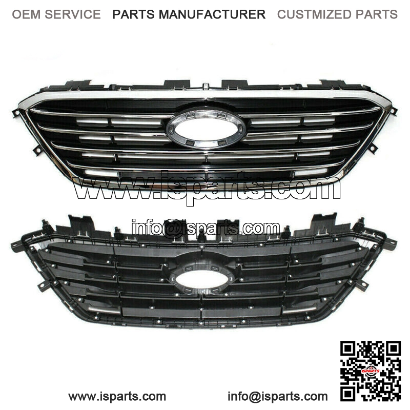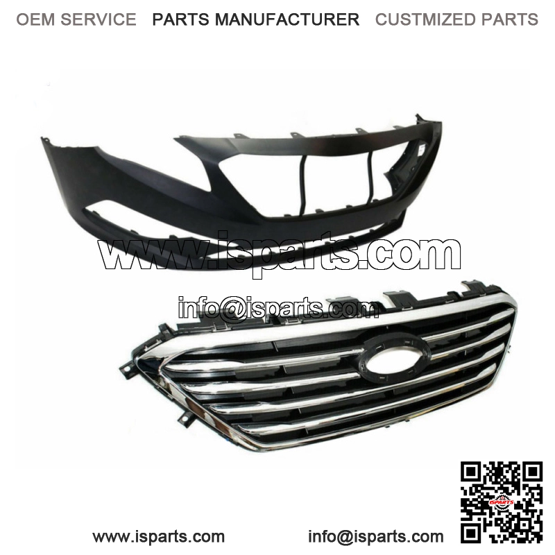 FitmentFor 2015-2017 Hyundai Sonata SE StandardDescription??Front Grille Grill-Color : Chrome Black-Position : Front Upper-Material :Abs Plastic /Polycarbonate Lens.Made From High Grade Oe Comparable Materials To Withstand Rough Road Wear And The Test Of Time.-Installation :Direct Bolt-On Replacement. No Modification Required. Product Does Not Come With Installation Instructions, Please Refer To A Shop/Factory Manual For Installation.Front Bumper CoverBumper Without Park Assist Sensor HolesReminder:-Take Extra Care When ing A Blade Or Knife To Open The Packaging To Avoid Accidentally Damaging The Surface Of Your Bumper Cover.- If You See Any Minor Scuffs, Don??T Worry??Your Bumper Cover Comes Pre-Primed For Protection And Should Be Scuffed Completely Before Applying Your Chosen Primer And Paint.-The Bumper Will Folded And Shipped.Package Include??1*Front Bumper Cover w/oSensor Hole1*Front Upper GrilleW/o Product InstructionReminder:(About the bumper)Outdoor Method:1. Find a spot that gets a lot of direct sunlight (it will need to be in the sun for up to 4 hours).2. Open the packaging and remove the bumper cover.3. Arrange the cardboard packaging to lie flat on the ground. This will serve as a clean surface for your bumper cover.4. Let the bumper cover sit in the sunlight for three hours.5. Once you hit the three-hour mark, reposition the bumper cover so that the front part is facing the floor. Leave it in this position for the remaining hour.Indoor Method:1.e the cardboard packaging as your work surface and place the bumper cover on top.2.Look for creased areas on the bumper cover. Apply heat to those areas with the heat gun.3.Avoid pointing the heat gun at one spot for too long, as excessive heat can distort or melt the plastic. Keep the gun moving to spread the heat evenly across the surface of the bumper cover.4.Once the last patch of creased plastic is straightened out, you can consider the bumper cover fully unfolded.