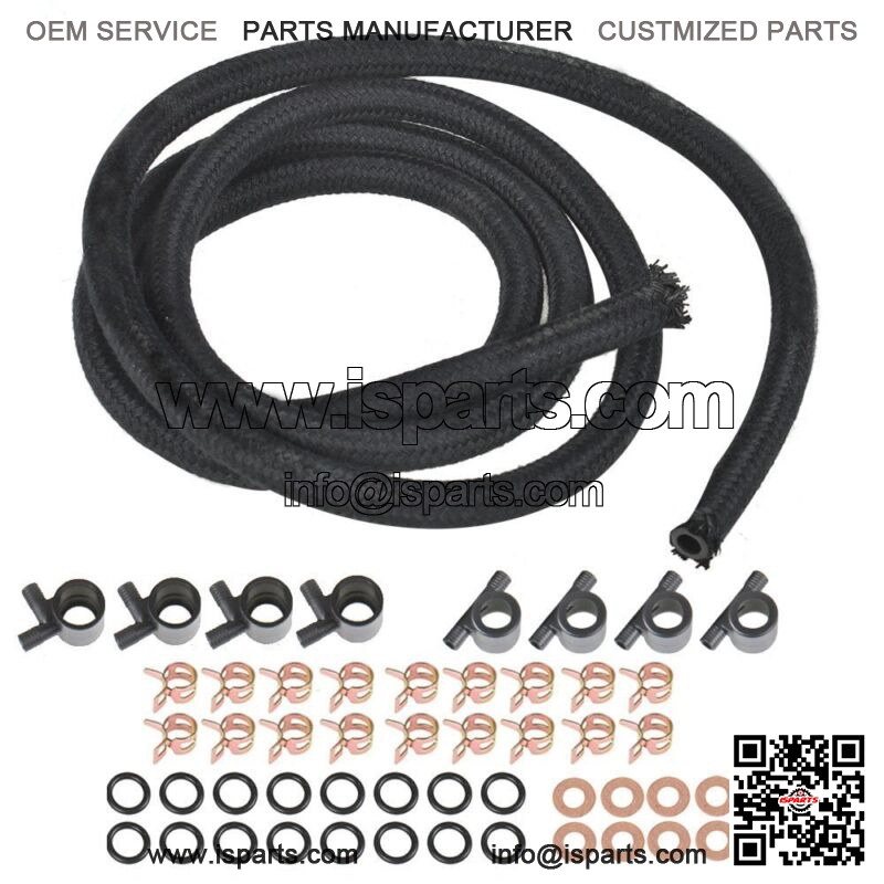 This kit can do up to three things for your truck. Stop Stubborn leaks from around your injector return tees. Cure Hard Starting due to air leaking into the fuel system * e this kit to install your new or rebuilt injectors to help the job run trouble free.Included in this kit: Enough Braided fuel line to replace all the lines between all 8 injectors (remember the rule Measure Twice and Cut Once) 18 Spring Clamps 16 O-rings, 2 for each Injector 8 Compression Copper washers. These go under the injectors, If you are not removing the injectors you can save these for later. Four Straight Tees Four Elbow Tees