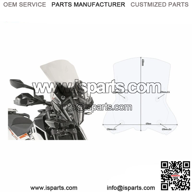 Specific transparent windshield 45 x 47 cm (H x W) to be combined with the D7710KIT attachments for mounting on FOR KTM 790 ADVENTURE / R (19) or with D7711KIT attachments for mounting on FOR KTM 390 Adventure 2020