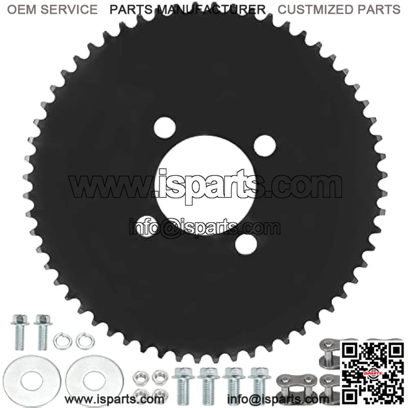Size :Go Kart Sprocket. Overall Diameter: 185mm (7.28 inch), Center Hole Diameter : 50.5mm (1.98 inch), Mounting Hole Diameter : 10mm (0.39 inch), Mounting Hole Distance (center to center, bolt hole circle): 51.5mm (2.02 inch).