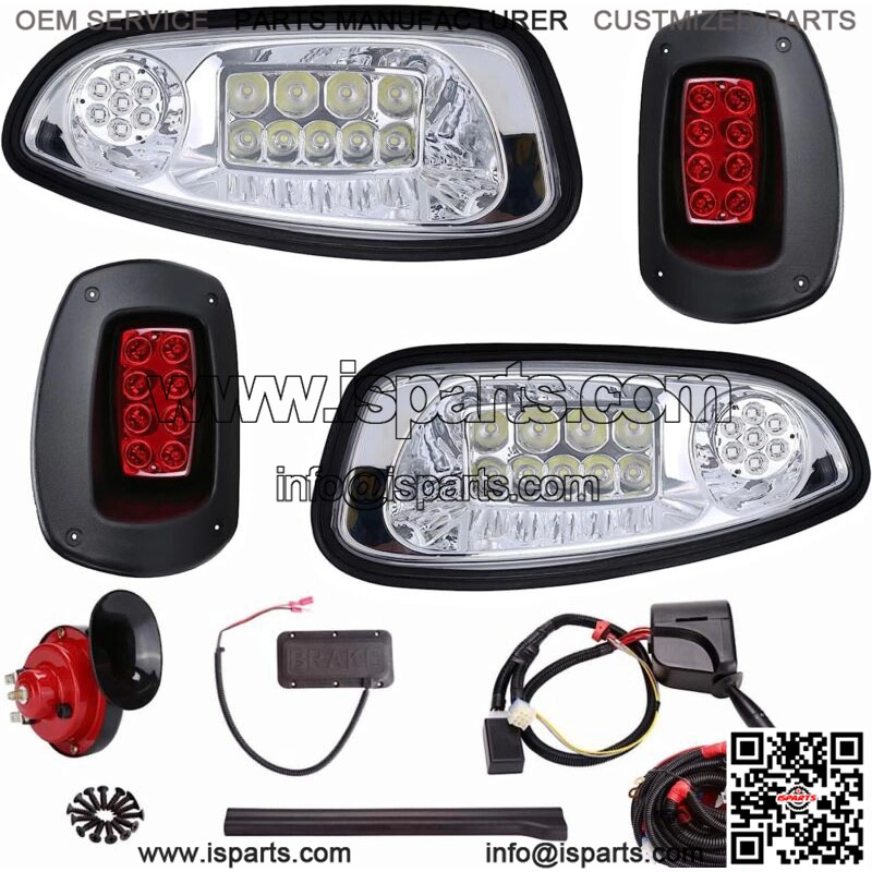 Golf Cart EZGO RXV LED Light Kit LED Headlights & Tail Light for 2008-2015- Golf cart deluxe LED Headlight Tail light upgrade kit fit EZGO RXV 2008-2015.If your golf cart is 48v or 36v,Pls note you MUST need a 48v-12v or 36v-12v voltage reducer.OUR LIGHT KIT NOT INCLUDED the REDUCER. (Light kit only work on 12V);- Golf cart EZGO RXV LED Light kit Package included: 2x LED head lights, 2xLED tail lights, turn signals and switch, horn, brake lights, harnehardware and instruction.- EZGO LED light kits come with universal deluxe light upgrade kit ,this deluxe kit included the up-gradable harness, that allows you to extend to brake, hazard,horn and turn signal function.there are front turn signals as well as rear turn signals, hazard flasher, head lights and brake lights.(AS Golf cart LED headlight and tail light kit are all LED light that are bright enough, so the turn singal does NOT with the function of high beam. )- Living in a golf cart community and using cart daily to get around, a suitable set of car lights is very necessary for your golf cart ,you will get a great night vision and be safe after your golf cart install bright led golf cart lights.- Easy to install: EZGO RXV LED Headlight Tail light kit comes with detail instruction and easy to install on golf cart, It will takes about 2-3 hours to install. If encountered difficult, please feel free to contact us. – light kits provide 100% Guarantee and Provide our customer 6 months WARRANTY Replacement.
