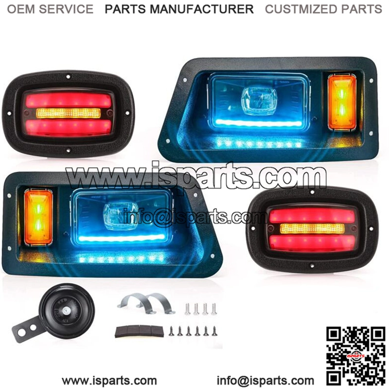 Golf Cart LED Light Kit for Yamaha G14 G16 G19 G22 W/Low High Beam Turn Signal- Golf Cart LED light kit for Yamaha G14 G16 G19 G22 gas & electric golf carts;- This Yamaha Headlight Tail light kits is suitable for 16V to 80v ,and you don??t need to buy voltage reducer any more what ever your cart is 36V or 48V. Input 12V-14V, disconnect the built-in DC converter to avoid voltage shortage.- Upgrade version golf cart headlight tail light LED kit includes low/high beam, daytime running lamp, turn signal light, brake lights, hazard light, horn function.- Headlight with music sync color changing light bulb, App control, change colors according to rhythm of music, dynamic or soft rhythm.- Package included : golf cart LED light kit and golf cart universal deluxe light upgrade kit: 2x LED head lights, 2xLED tail lights, turn signals and switch, horn, brake lights, harnehardware and instruction.