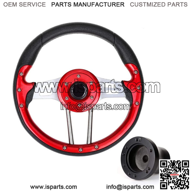 12.5 inch Golf Cart Steering Wheel & Black Hub Adapter for Club Car Precedent- Red- Golf cart steering wheel and