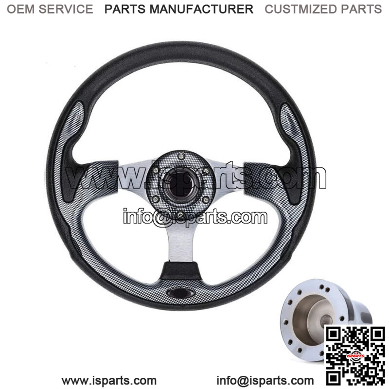 Golf Cart Steering Wheel with Adapter for Club Car Precedent Carbon Fiber Style- 12.5″ Carbon fiber golf cart steering wheel and Chrome 5/6 hole steering wheel hub adapter fits Club Car Precedent gas and electric golf cart only;- The decor of this golf cart steering wheel is inspired by professional racing cars. By replacing this steering wheel with its nice racing style look, your golf cart will look new and stand out on the street.- Golf Cart Steering wheel brings a comfortable feel through the rounded and smooth grip that fits the curve of the human palm, so that your hands do not get tired of driving for a long time.- Golf Cart Steering wheel has hard aluminum spokes and Lightweight body made of PVC, wear-resistant, corrosion-resistant and 1-year warranty, which makes it last longer.- Easy to install: Come with upgraded nuts and wrench for 5 minutes quick installing this golf cart steering wheel and Club Car Precedent chrome adapter. – Package: 1x Golf Cart Steering Wheel + 1 x 5/6 hole Steering Wheel Hub Adapter for Club Car Precedent.- Best Birthday Gift/ Christmas Gift for your farther/ friend.
