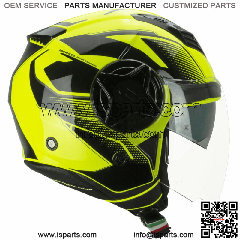 Details169 ILLIDemi jet with long visor, which extends to cover the chin, with predisposition for PINLOCK lens. It has a retractable smoked internal visor, which can be activated by rotating the left helmet plate.It is also equipped with the AIR STREAM SYSTEM ventilation system consisting of resealable front air intakes, air ducts in the inner shell and rear extractors. The fully removable and washable perforated interiors are made with a hexagonal thermoformed top for better wearing comfort and in EXTRACOOL fabric, extremely soft in contact with the skin.Finally, they are enriched by rear reflective bands or in high visibility fluorescent yellow to improve passive safety.DETAILS:
