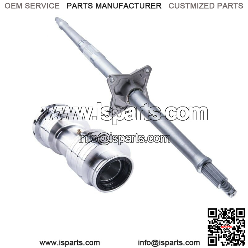 This rear axle and bearing carrier are an aftermarket replacement built to the specifications of the OEM axle and bearing carrier. This bearing carrier comes with the new bearings, seals, spacers and O’rings where necessary.