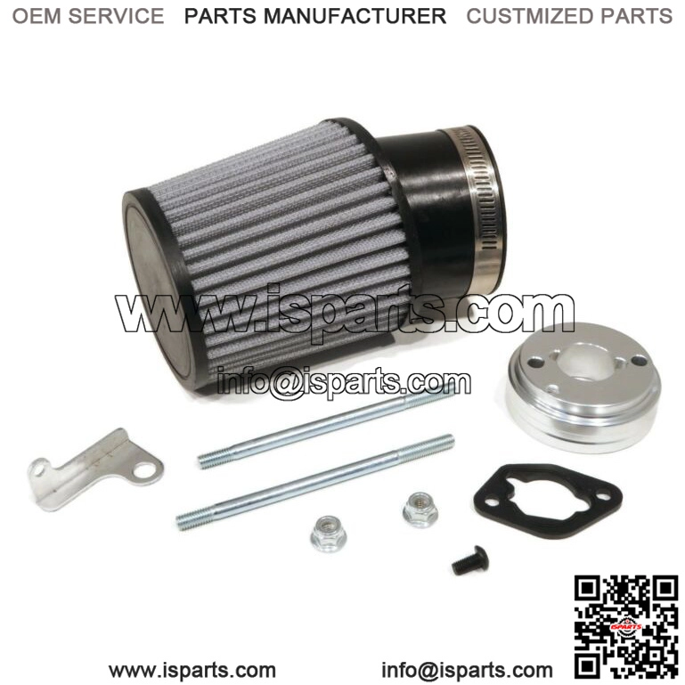 Includes – (1) Inlet Air Filter, (2) Filter-to-Carburetor Mounting Studs, (1) Aluminum Adapter, (1) Choke Hold Bracket, (1) Hose Clamp &Hardware; comes as shown in the first image