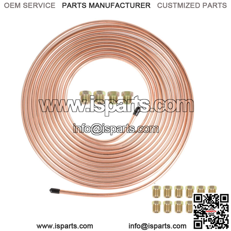 Iron Plating Copper Brake Line Tubing Kit 1/4 OD 25 Ft Coil Roll &Fittings
