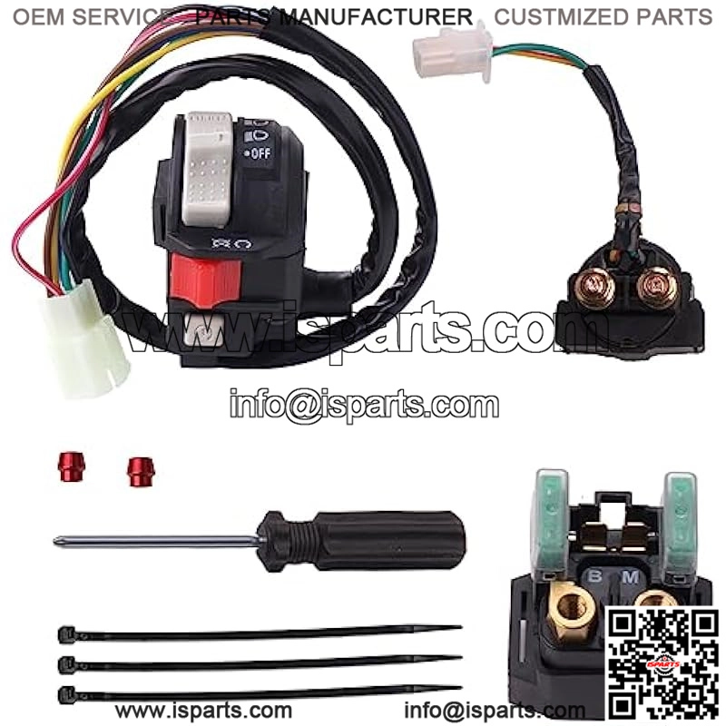 Package Contents:1 x left handlebar switch??1 x Starter Solenoid Relay??1 x Screwdriver??Plugs for Relay Pairs??3pcs* Ties