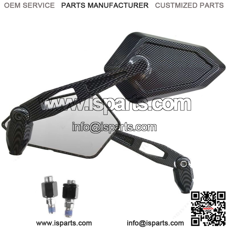 Pair of mirrors, approved for the circulation in EU, Carbon Look colour: the adjustable swivel arm lets you change position of 25 degrees both in up/down and in/out direction.