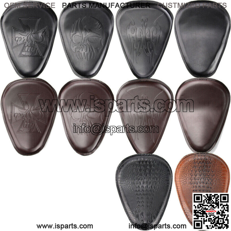 This is the solo driver seat and springs, bracket,which made of high quality leather and steel, and there are2 colors (black and brown) and 6 patterns availablefor choosing, in addition, the seat will be custom fit forSportster, Chopper and Bobber, also fit to most models,such asHarley, Honda, Yamaha, Suzuki and so on.