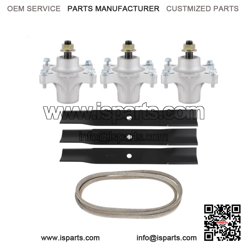 KIT INCLUDES: (3) SPINDLES (3) BLADES (1) BELT SPINDLE REPLACES OEM# EXMARK: 117-7268, 117-7439 : 117-7267, 117-7268, 117-7439, 127-0751 SPINDLE FITS MODELS: : 4200, 5000, 4216, 4235, 4260 AND 5060 TIMECUTTER SPINDLE SPECIFICATIONS: OD: 6 1/4″ BELT REPLACES OEM# : 119-8820, 120-3892 BELT FITS MODELS: TIMECUTTER SS5000 AND SS5060 WITH 50″ DECK BELT SPECIFICATIONS: WIDTH: 1/2″ LENGTH: 141 1/2″ BLADE REPLACES OEM# : 110-6837-03, 112-9759-03 BLADE FITS MODELS: : TIME CUTTER Z, TIME CUTTER Z, Z5000, 3 FOR 50″, 74370, 74372, 74373, 74374, 74375, 74376 BLADE SPECIFICATIONS: LENGTH 17-1/2 WIDTH 2-1/4″ C. H. DIA 5/8″ THICKNESS 0.1600″