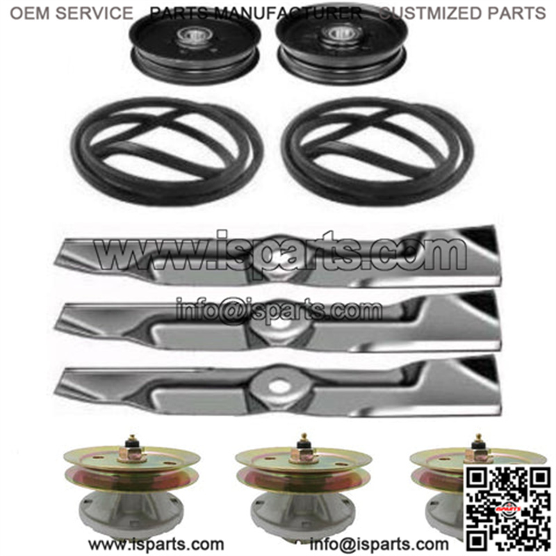 (3) Blades(3) Spindle Assemblies with Pulleys Attached(1) 60″ (1524 mm) x 1/2″ (12.7 mm) Primary V-Belt(1) 111-3/8″ (2828.92 mm) x 5/8″ (15.875 mm) Secondary V-Belt(1) Small Flat Idler Pulley(1) Large Flat Idler Pulley