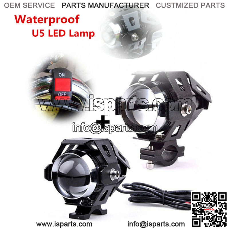 Pair Motorcycle LED Headlight Driving Fog 125W U5 Lights Spot Lamp&Switch Parts (For: More than one vehicle)