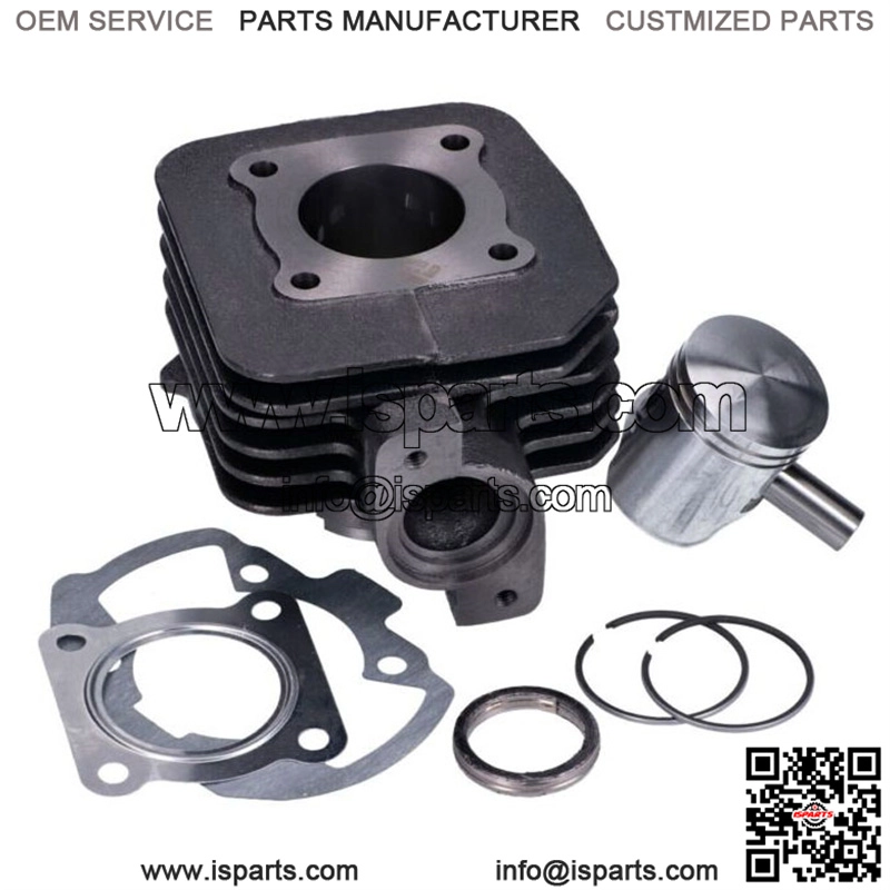 A standard cylinder kit for scooters fitted with the Peugeot horizontal air cooled 2-stroke 50cc engine. The cylinder kit is identical in size and performance to the original, making it an obvious choice for a road legal replacement. The kit is supplied as per the image shown. Cylinder head and small end bearing can be ordered separately.