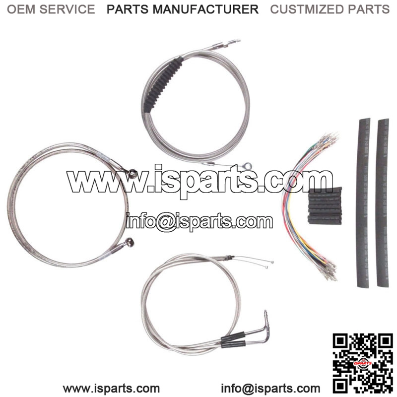 You are purchasing a new Complete Stainless Steel Braided Cable Kit with wire extensions for 2007-2015 Harley-Davidson Softail models Without ABS brakes. These are longer than stock length for 16″ tall Ape Hangers with total widths of 33″-39″. Kit includes throttle, idle,&clutch cables plus the complete front brake line and wire extensions.