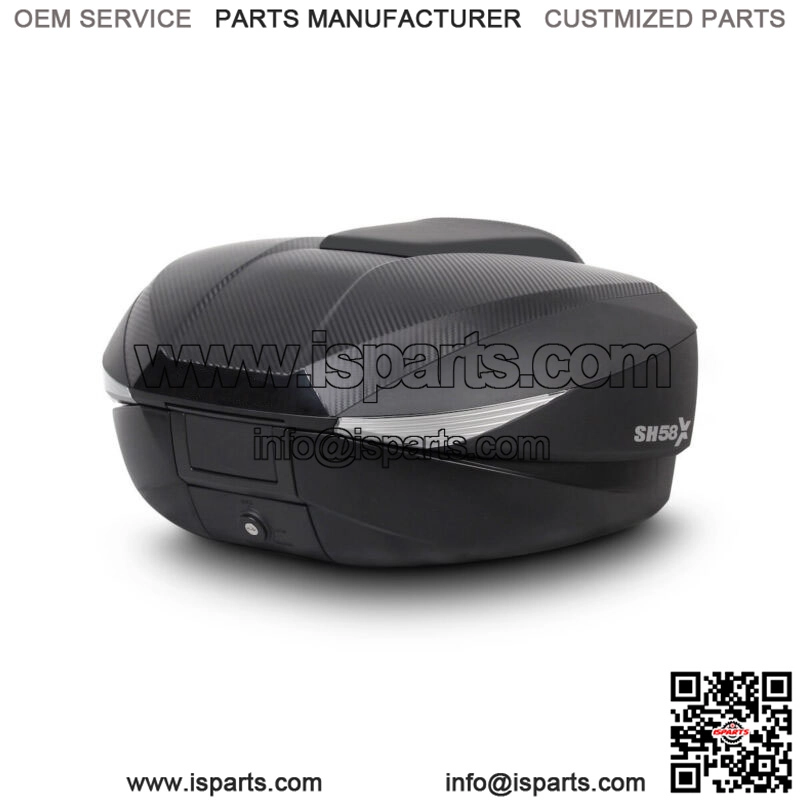 The SH58X eXpandible motorcycle top case is a unique motorcycle case on the market. Its innovative design allows you to adjust the load volume in up to 3 positions in a few seconds (46, 52 and 58 litres). It offers maximum security thanks to its innovative “Smart Lock System” hermetic closing system. With its unique aluminum finish, it is perfect for combining road and trail adventure.The SH58X eXpandable motorcycle top case with carbon finish, with adjustable volume in 3 positions (L, XL and XXL), has the capacity for 2 enduro helmets, as well as travel accessories. Cutting-edge technology and innovative design, the eXpandible top case earned it the prestigious Reddot Design Award 2017, a reference among designers and manufacturers, the only top case on the market adjustable up to 58L, it adapts equally to everyone’s life days in the city and on the adventure trips you’ve always dreamed of doing: a very versatile top case, where the change between its different positions goes from an aerodynamic top case to a large top case in just a few seconds. Its structural structure ensures high rigidity and strength with minimal weight, and it also has internal limiting strips that ensure that the internal load does not shift. It offers maximum safety thanks to its innovative hermetic locking system “Smart Lock System”. This system allows you to keep the suitcase open without being able to remove it, as well as being able to open and close it without the need for the key, in this way you will only use the key to lock it. Opening with one hand. The patented system that regulates the volume of the SH58X, being able to expand or reduce its dimensions, makes it a highly functional and practical top case, adapting at all times to the needs of the motorcyclist: – Size L: perfect for transporting objects for daily use.- Size XL: very useful for short weekend outings. With capacity for two modular helmets.-XXL size: enough to accommodate everything you need on that incredible adventure you’ve always dreamed of. With capacity for two enduro helmets. Furthermore, you can complete your top case with accessories such as the brake light, the double backrest (cushion) or even the expandable internal bag. The backrest (cushion) (D0RI80) has two pieces, composed of two layers of polyurethane foam covered with plaster in two textures, guaranteeing passengers total comfort. The expandable inner bag (X0IB10) with top opening and external pocket for direct accessibility is reinforced with an internal foam to protect the contents from possible impacts and a strap and a handle for easy transport. In this way, the internal bag facilitates the transport of objects without having to remove the suitcase. Finally, the brake light (D0B29KL) is made with LED, low consumption and very easy to use install, as it attaches to the bottom of the suitcase base. This increases safety, making the motorcycle more visible from a rear view. If you like asphalt and Sport Touring is for you, SH58X is your top case. Its sophisticated carbon look, combined with the side cases with SH36 carbon look finish, breathes modernity and sophistication. If you are one of those who take the design one step further, you would like to be able to choose the cover in various colors: white, black metal and new titanium, or the virgin option that you can customize to your liking. Like other top cases (with the exception of TR48/TR37) for motorcycles, includes the grill and fixing kit.SPARE PARTS