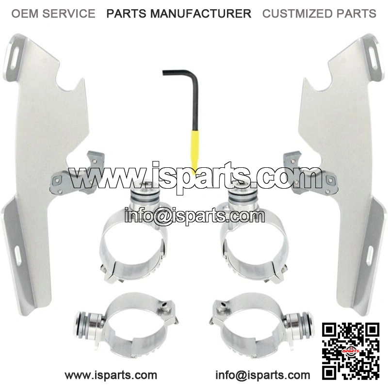 Kits are a combination of CNC-machined aluminum plates and anchors, stainless steel hardware, gray polymer bushings and glass-filled nylon latches or “Night Shades” black version which, is a gradient black windshield with black E-coated stainless steel straps, fittings and hardware for a black-on-black sinister look