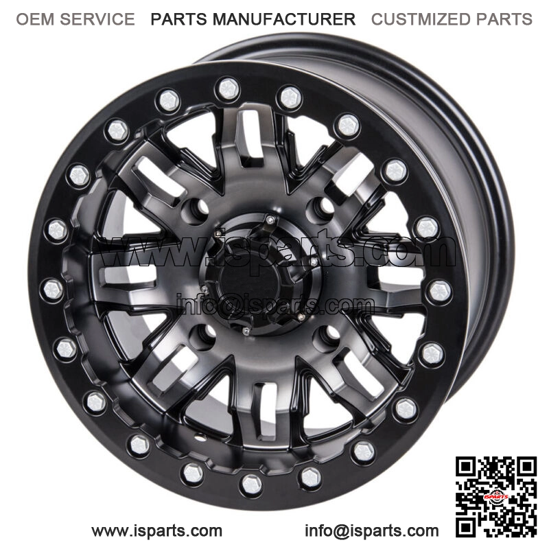 Tusk Teton Beadlock Wheel 15×10 5.0 + 5.0 Gun Metal/Black 4/156 Lug Pattern. See Fitment Chart For Vehicle Model Fitment.