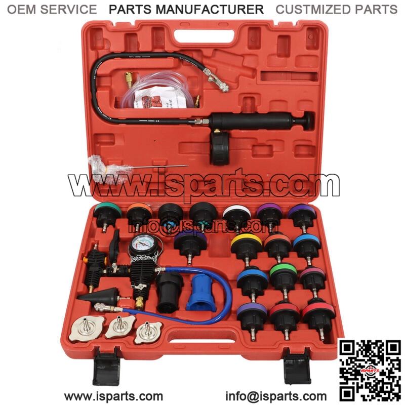 28 PCS Radiator Pressure Tester: Comes with various instruments, which help you solve any problem about radiator pressure conveniently and quickly.Special design of vacuum purge and refill tool connection allows easy testing for leakage in radiator system and quick change of coolant. With this pressure tester, you could easily do the job.