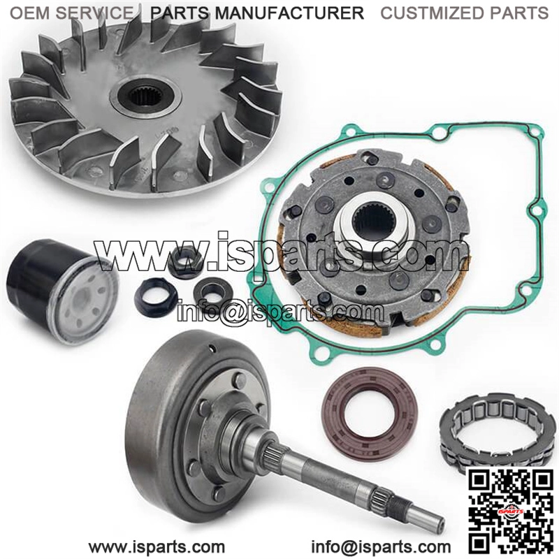 Kit10: Wet Clutch Cover Drum Housing + Clutch Primary Fixed Sheave + Primary Dry Clutch CVT Sheave Assy + Wet Clutch Pad Shoe + One Way Bearing + Flange Nuts + Gasket + Oil Seal + Oil Filter + Secondary Driven Clutch CVT Pulley.