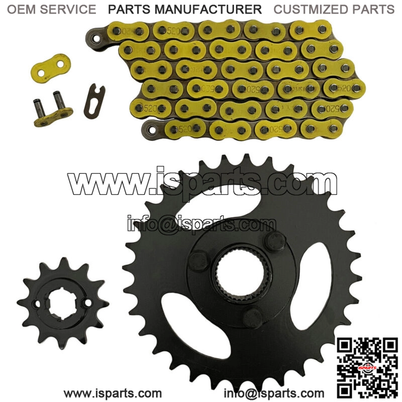 Yellow 520×60 Drive Chain & 12/32 Sprockets for Polaris RZR 170 fits 2009-2016